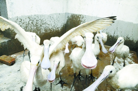 郑州来了12只嘴巴像琵琶的鸟
