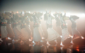 随后,在饭店的喷水舞台上,由200名北海道市民组成的两支舞蹈队冒着蒙蒙细雨,向贵宾献上了传统舞蹈表演。表演获得了贵宾的一致好评,有几位领导人甚至忘记了正在下雨,纷纷放下手中的雨伞,拍手称赞。