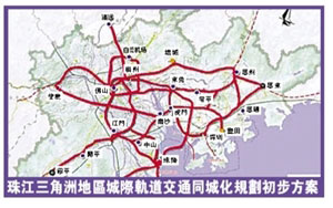 珠三角地区轨道交通同城化规划方案的初步构想在会上披露,新规划提出的轨道交通网络将基本覆盖珠三角所有县级以上城市,加上城市轨道交通、普通铁路等,珠三角的轨道交通网络密度将达到每百平方公里12.2公里长,已经接近了法国巴黎都市圈以及日本东京都市圈的水平。