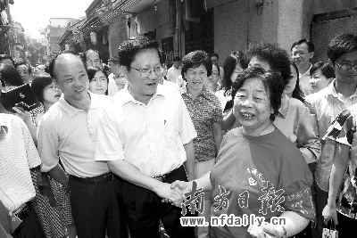 与市长在家门口不期而遇,一些居民立即抓住机会向张广宁反映问题。张广宁一一耐心倾听,并作出回应。在离开晓园新社区前,张广宁勉励社区工作人员说:“社区无小事。居民反映情况,这是好事。有的事情你们可能觉得很小,但是对于一个家庭来说就是天大的事情。如果这些问题经反映都能得到解决,那社会就和谐多了。”张广宁建议,各区应该在街道设立居民接访点,及时了解居民生活中的困难、及时排解矛盾。