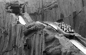 昨天,石景山游乐园新扩的“冒险世界”和“幻想世界”两主题园区开始接待游客。园方表示,将从本周六至8月31日启动夜场服务至21时30分,市民可边品尝美食边观看奥运赛事直播。据介绍,这两大主题娱乐区总占地10万平方米,北扩后,园区面积增加了一半。该工程历时2年半,投资2亿元。本报记者 薛珺 温薷 摄影报道