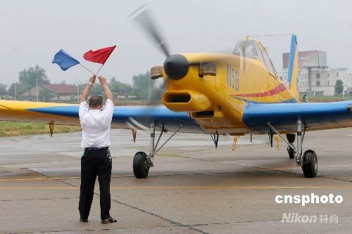中国自行研制的新型农林专用飞机——农5B飞机01架,7月9日在江西南昌首飞成功。这是中国农林飞机发展史上的又一个里程碑。图为农5B飞机准备起飞。中新社发 许珊 摄