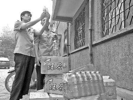 为防止打草惊蛇,10日,潍城区工商分局2名执法人员着便装来到该批发点。记者一路跟随,在潍城区青年路一处二层楼房里的这个批发窝点,执法人员一共查获冒牌"康师傅"冰红茶4箱、"康师傅"橙汁饮料14箱、"康师傅"低糖绿茶10箱,标注的生产地址分别为香港、天津等地,均标有"康师傅"注册商标的标记。