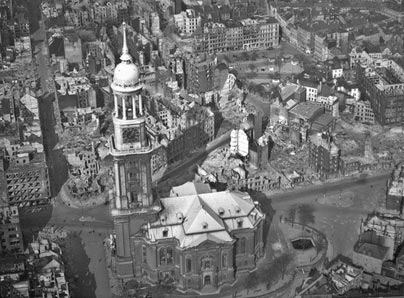 在英国皇家空军空袭中遭到重创的汉堡市。