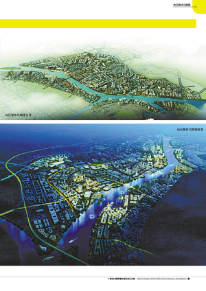 在白鹅潭中心片区,该规划提出双“T”形空间形态“缝合”两岸的空间架构,通过绿化打造,塑造一片流光溢彩的广佛新天地景观来集聚总部办公,通过花地河绿环建设形成水秀花香的氛围。该方案的商务中心区由两翼的总部办公区、滨江的文化休闲区和围合的中央公园构成。