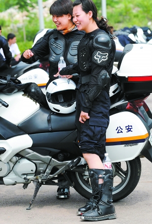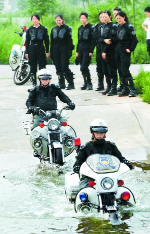 就是在这种情况下,从五月至今,魔鬼训练终于有了收获,“警花”们驾驶技能提高程度之快,令男队员们也刮目相看。如今,她们一样能够熟练地驾驶摩托车,编队行进,自如穿桩,应对路面各种复杂状况。女警们告诉记者,现在她们已经差不多达到了“人车合一”的境界。男女队在“紧急制动”科目的一次挑战赛中,居然是女队“完胜”——估计前提是男队员谦让了一点。