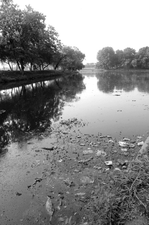 当天下午,记者接到卞先生反映后,来到淮南龙湖公园,果然见到一条由南向西北方向横穿公园的臭水沟,沟里漂浮着各种垃圾,恶臭味令人作呕。这条臭水沟与公园的南湖、北湖相邻,中间隔有一个约10米宽的坝子。一位游客说,过去有许多游客在这个坝子上漫步,如今,因臭水沟实在太臭了,已经很少有游人愿意在此驻足了。