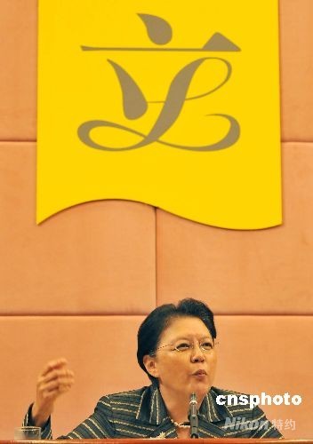 七月十四日,即将卸任的香港立法会主席范徐丽泰,在香港立法会大楼举行新闻简报会,回顾第三届立法会过去四年的工作。中新社发 邓庆乐 摄