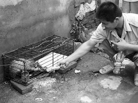 15日上午11时许,记者来到了时庄镇古柳村,记者在孔宪福家中看到了被关在铁笼子里的“小偷”,它长着棕色的皮毛,尖长的牙齿,身体个头比小狗大点,“这家伙很能吃,一顿能吃五六个棒子。”村民孔令红告诉记者。