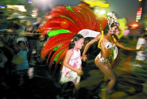 据悉,到8月26日活动结束前,来自南美洲的演员将在40余天时间里不间断为游客提供火爆的桑巴舞等南美洲舞蹈表演,并和炫彩夜光大巡游一道为奥运气氛、为狂欢节增温;同时,由国外厨师烹制的异域美食以及平价供应的冰镇燕京啤酒,也让游客们能在一饱口福之余无忧畅饮。本报记者 安旭东 摄影报道J130