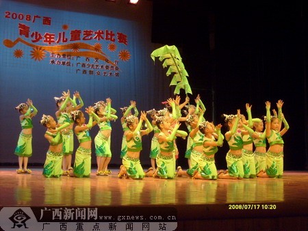 广西新闻网7月17日南宁讯(记者梁凯昌 实习生 陈虹羽 赵艳 恒谦 韩雪萍)为了展现广西当代少年儿童的风采,丰富少年儿童的课外活动内容,推动校园文化建设,构建和谐社会,营造和谐校园文化氛围。从今天开始至7月20日,广西青少年儿童艺术比赛在南宁举办。