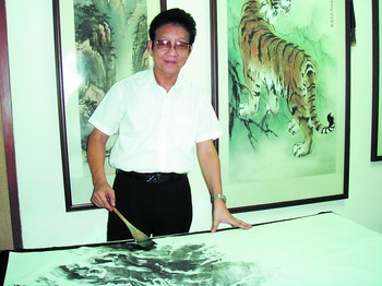 陈怀谷在省博即将展出70余幅作品,大部分作品以中国大陆南方名山秀水入画,“这是桂林,这是张家界,这是庐山,还有这是雁荡山……”陈先生为记者一一介绍画中美景,言语中可见他对大自然发自内心的热爱,琼瑶称他是个“但求自由自在的人”看来是没错的。除了美景,画中也有一些动物、花鸟内容,琼瑶说这个“小弟”自小“喜欢养小动物”,很小时就给小动物写生,看来陈怀谷的画缘也是天生的。
