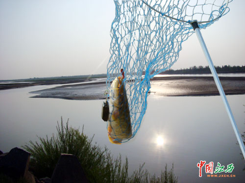 7月22日,一位吴忠市民从黄河钓起一条野生鲶鱼。黄河在吴忠境内水流平缓、水土肥沃。基于此特点,吴忠决定把黄河建成“城市 内河”,建设黄河大桥连通主城区和卫星城青铜峡市,并沿境内黄河河岸打造滨河生态旅游景观。(江西网记者 吴辉军 摄)