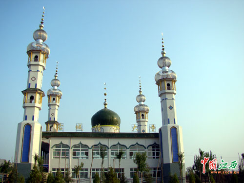吴忠市位于黄河岸边的清真寺——古城清真大寺。吴忠市完成“东扩西移”工程后,它将与一幢幢具有民族特色的农民新居一道,成为京藏高速公路上一道靓丽的塞上新景。(江西网记者吴辉军摄)