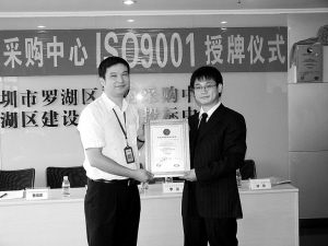 那么,罗湖区政府采购中心为何要引入这一质量管理体系呢?用该中心主任的话说,它不仅是一个质量管理体系,同样是衡量一个部门是否“标准化、制度化、科学化、国际化”的标尺。通俗地说,得到这一认证,就是得到了一张“合格证”。