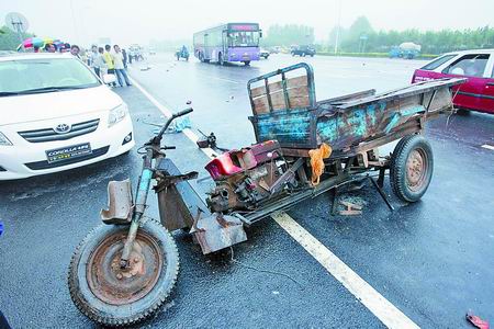 在现场,一辆挂有临时牌照的白色丰田轿车,可谓是此次事故的“无辜受害者”——事发时,丰田轿车刚好停在路边,结果不幸被已经失去控制的机动三轮车撞住了车尾。“我当时和一位朋友在车里坐着,听到‘咣’的一声,就知道出事了。”轿车司机赵雪松说,尽管车内两人在事故中都没有受伤,但瞅着被无辜撞坏的车身尾部,心里很不是滋味。“车是借朋友的,咋给人家交代?”赵雪松一脸愁容。