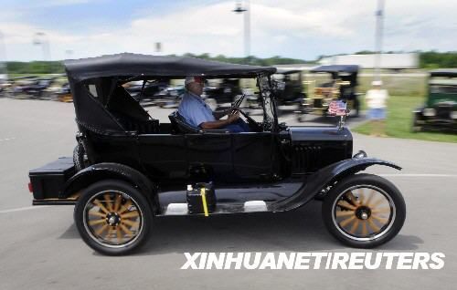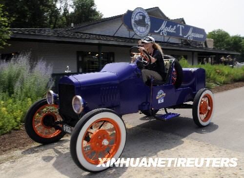 7月21日,一名美国男子驾驶一辆老式福特汽车前往印第安纳州里士满参加福特“T”型车100周年活动。从7月21日开始,来自美国以及加拿大的一千多名福特“T”型车爱好者驾车来到里士满参加为期一周的老式福特汽车大聚会。 新华社/路透