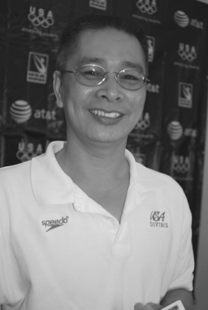 美国跳水队陈文波教练。
