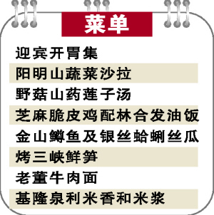 郭台铭与曾馨莹婚礼喜宴计有八道菜,台湾美食为主,按环保概念选择北台湾本土的新鲜食材,同时融合地方著名传统小吃,呈现精致台湾味。喜宴不走华丽风,喜宴餐点里看不到鲍鱼、鱼翅,而是以地道台湾小吃例如老董牛肉面入菜,送给宾客的小礼物是“环保筷”。郭家人希望宾客能幸福圆满、“铭”记在“馨”。喜宴每桌要价25800元新台币。