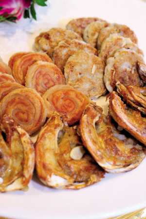 顺德野鸡卷:色泽金黄,外酥里嫩,香味可口。是顺德的标志小吃。外人不明,此鸡卷缘何前面要加个“野”字,直到去了顺德试过正宗“野鸡卷”后,始知传统的顺德大良“野鸡卷”原料实为猪肉,是炸肥猪肉卷而已,和鸡没有任何关系的。