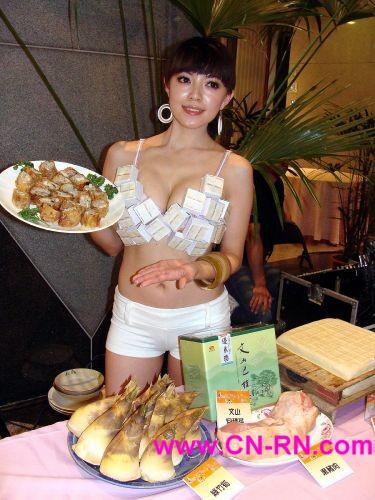 据台湾“中央社”消息,台湾深坑乡公所23日宣布26日起举行“深坑四宝文化节”,会中还找来辣妹穿着豆腐装促销“豆腐”、“绿竹笋”、“黑猪肉”、“包种茶”等深坑四宝,吸引不少目光。