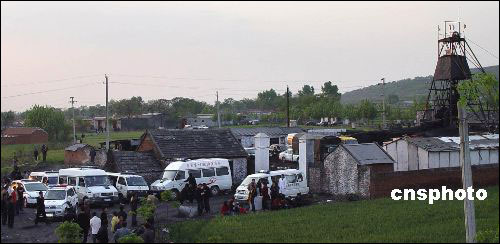 二零零七年四月十六日十九时四十分左右,河南平顶山市宝丰县周庄镇王庄煤矿发生爆炸事故,造成井下三十一人死亡、九人受伤。图为四月十七日已被警方封锁的矿难现场外围。 中新社发 李志全 摄