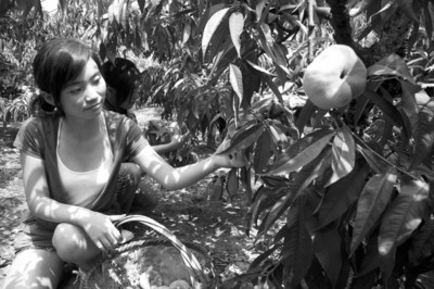 金山吕巷的蟠桃种植已有30多年,是目前全国最大的蟠桃种植乡镇,面积近10000亩,其中被称为桃中之王的“皇母”蟠桃种植面积达5000多亩。这里的桃子果大、核小、肉质细腻,有关人士告诉记者,它的含糖度达到 15度以上,上色率为75%。去年“皇母”蟠桃基地入选上海2010首批“迎世博优质特供果品基地”。