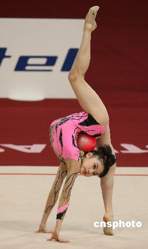 中国艺术体操队的王牌周晓菁十二月十三日在曼谷技压群芳,以38.469分获得艺术体操个人全能冠军。中新社发 任晨鸣 摄