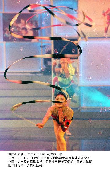 二月二十一日,CCTV中国体育人物摄影大赛颁奖典礼在北京中国中央电视台隆重举行,深受摄影记者喜爱的中国艺术体操队亲临现场,为典礼助兴。中新社发 武仲林 摄