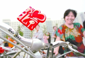 昨天晚上8时许,中关村广场上荧光闪闪,许多自行车上都可以看到亮着的“我爱北京”。明天起到8月31日,将有2万个“我爱北京”LOGO免费安装到自行车上,市民可骑车到设在中关村新中关路口、当代商城、甘家口大厦、公主坟、五棵松等地的安装点免费安装。