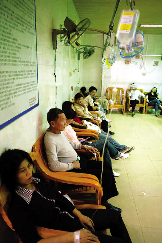 在天河区的另一家大医院,一位喉咙发炎的患者刘先生正在打点滴。他说在他的强烈要求下,医生同意给他输液治疗,但拒绝使用他要求的青霉素,理由是“最近病人多,药房没有这种药了”。最后医生给他开了一些包括炎琥宁和克林霉素等在内的药品,药费160多元。