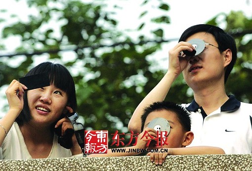 没有天文望远镜,不少市民也通过“土方法”——墨镜、照相底片、熏黑的玻璃,登上天桥等高处观赏这一壮观天象。