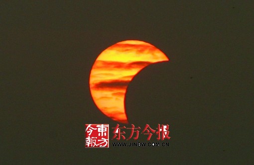昨天,我省部分地区的居民有幸看到了本世纪我国境内首次发生的日全食奇观。省会郑州位于全食带的边缘,19时18分,日食进入食甚(日食中心时刻)阶段时,太阳“带食而落”。