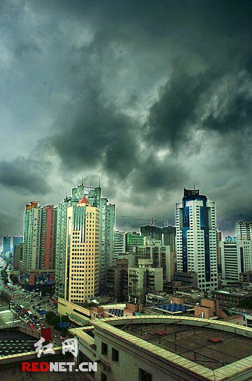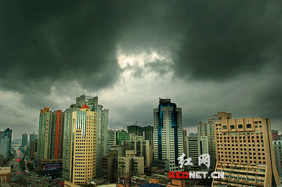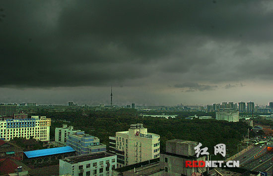 组图:黑云压城雨滂沱 长沙暂别持续高温天气