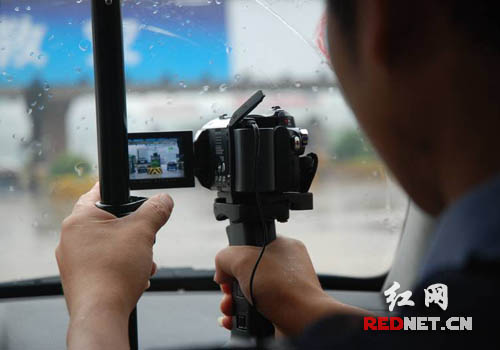 (民警利用车载移动抓拍系统监控交通状况)