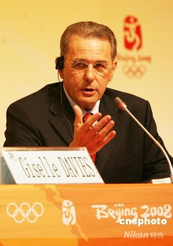 8月2日,国际奥委会主席罗格在北京奥运会主新闻中心举行的发布会上,就国际奥委会执委会会议及北京奥运会的相关情况答记者问。中新社发 武仲林 摄