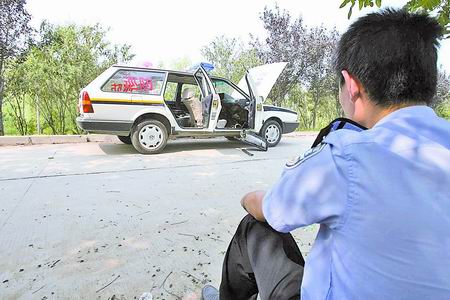 下午1时,记者坐采访车刚走上花园北路贾鲁河桥南侧的河堤,就看见张新涛下了警车。