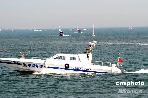 随着二00八北京奥运会开幕在即,作为奥运会帆船比赛的举办地青岛,进一步加强对帆船比赛海域的安保工作,青岛公安边防支队的巡逻艇坚持二十四小时对帆船比赛海域进行巡逻。中新社发 曲连遵 摄