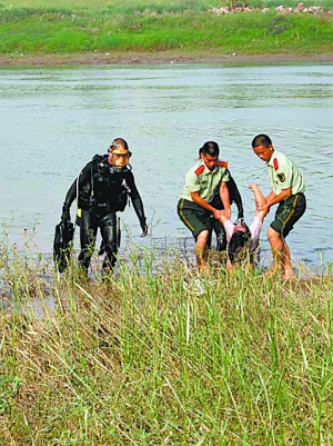 本报讯 (记者王广永、陈昕宇、翁晓鹏摄影报道)3女1男大清早来到南海金沙下沙教桥河边野泳,游到对岸时忽然发现一名女伴不见了,只见河面上有一只手在不断摇晃,同伴急忙报警求救,消防特勤队员火速赶往现场,在河中打捞起一名18岁女子的尸体。