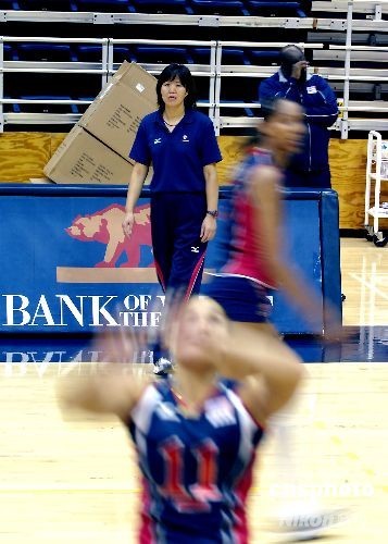 当地时间7月31日,郎平和美国女排加州大学伯克利分校的排球馆做赛前热身。郎平将率美国国家女排于美西时间8月1日从旧金山启程赴中国参加2008年夏季奥林匹克运动会。美国国家女排目前在国际排名为第四位。在1984年和1992年的奥运会上,分别获得银牌和铜牌。中新社发 陈钢 摄