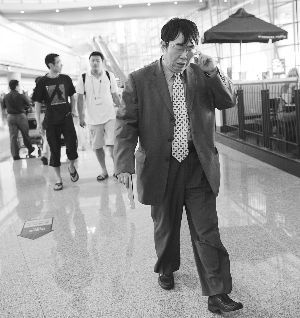当所有记者都在翘首以盼菲尔普斯出现时,记者在T3航站楼里面发现了一个熟悉的身影,“棋圣”聂卫平。尽管老聂的形象还是那么鲜明、那么容易被认出,但是当他穿过记者包围圈,走到另外一个出口寻找司机时,现场上百位记者愣是没有一个人理他……尽管身 边还是有人认出了这位昔日的风云人物,不时还有中年人在小声讨论,“这不是那个、那个谁吗?”但是除了快报摄影记者,没有一家媒体上前拍照……孤独的聂棋圣独自一手提着大包,一手拿着许开祯写的那本揭露官场幕后真相的小说《堕落门》,在出口处等了整整10分钟,才等到司机。