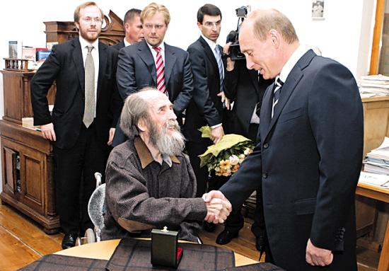 索尔仁尼琴与普京的关系最初也磕磕绊绊。他2002年批评普京在打击俄罗斯寡头方面成绩甚微。不过,普京后来逐渐认同索尔仁尼琴对西方的批评。索尔仁尼琴则像普京那样主张俄罗斯应走自己的路,建立俄式民主社会。
