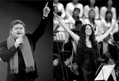 记者:我国和国外有许多好的歌手,为什么会在北京奥运会开幕式上,选择英国著名歌手莎拉·布莱曼与我国歌手刘欢共唱主题歌?