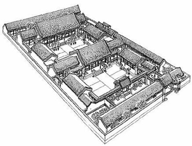 排到院子里居住,每家的人口也在不断增加。为了弥补由于正房空间不足带来的功能缺憾,每家都开始抢占有利地形,圈地建房。
