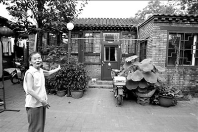 刘桂珍站在东四四条61号院向记者介绍情况 京华时报供图