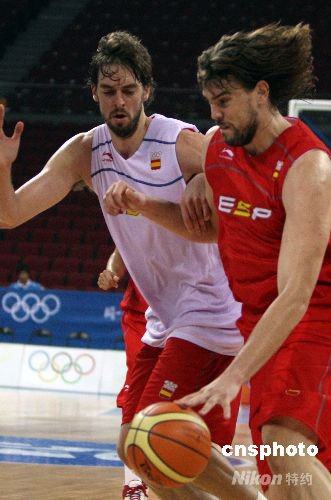 加索尔兄弟训练赛场真刀真枪不惜力 中国新闻网 中国新闻网官方账号 2008.08.0716:17 关注 8月7日,世界冠军西班牙男篮在北京奥运会篮球比赛馆——五棵松篮球进行赛前的最后一场热身训练,效力于NBA洛杉矶湖人队的超级球星保罗·加索尔(左)与弟弟马克·加索尔率领球队演练战术。中新社发 任晨鸣 摄