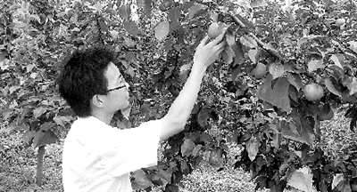在一棵果树前,陪同记者的小宋指着树上的果子问记者这是什么,从小在果园里长大的记者没有丝毫犹豫地说“苹果。”小宋笑着说:“错了,是苹果梨,长得像苹果,但是是梨,是农艺师们把梨树的枝条嫁接到苹果的树冠上,开花后经过自然授粉,结的果就是苹果梨。”