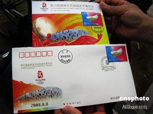 据北京南区邮票公司负责人介绍,此次中国集邮总公司发行了1枚1套奥运开幕式邮票,同时发行了首日封和纪念邮票,北京市邮票公司发行了一枚首日封。首日封和纪念邮票上均包含“鸟巢”、“中国印”等奥运元素。