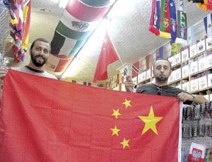 国旗专卖店内中国国旗热销。(加拿大《星岛日报》)