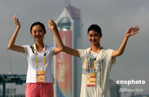 8月7日,青岛迎来入夏以来最酷热的天气,奥帆赛颁奖礼仪小姐们在骄阳曝晒下进行排练,模拟奥帆赛颁发奖牌的所有过程。这些女孩大多数来自几所艺术、旅游类中学和中专,少数来自大学。按照要求,在长达几十分钟的排练时间里,她们一直面带微笑,举止大方彬彬有礼。一遍遍苦苦排练热得女孩们满脸汗珠,但没人叫苦,她们要身临其境一般展示青岛女孩最美的一面。中新社发 周青先 摄